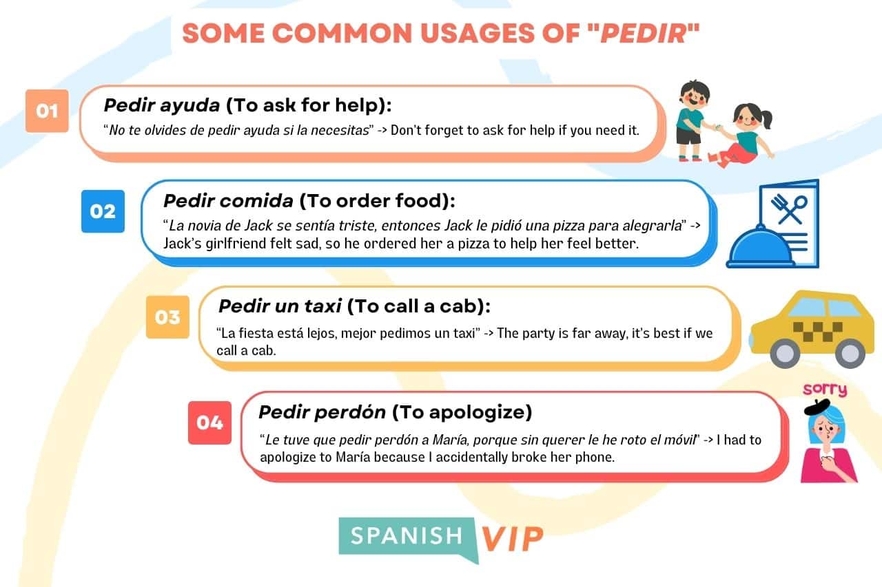 With practice and exposure to the verb in context, you can master the “pedir” conjugations and effectively incorporate them into your Spanish communication in no time.